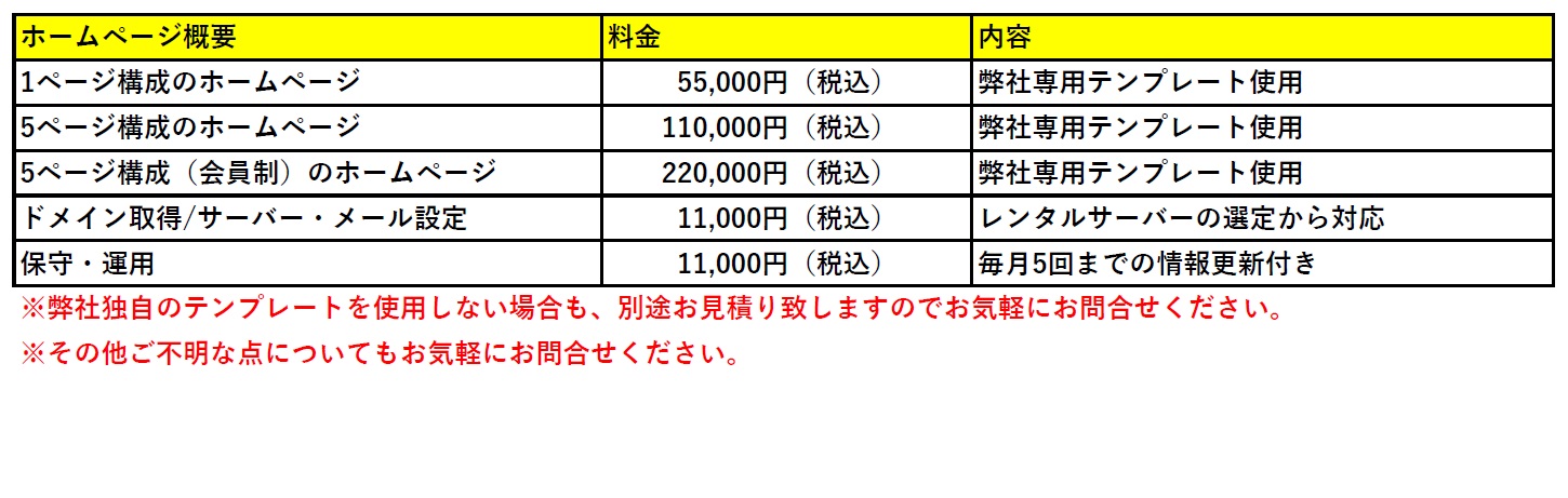 eこと合同会社では、誰もがホームページを持つことができる世界を実現するために、テンプレートを活用して作成致します。 そのため価格設定は至ってシンプルな設定となりました。
